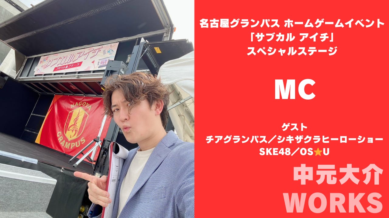 名古屋グランパスホームゲームイベント「サブカルアイチ」スペシャルステージMCを中元大介が担当いたしました。